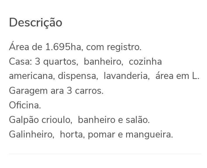 Não deixe passar a chance de adquirir o sítio dos seus sonhos no bairro Passo Grande em Sentinela do Sul-RS. Comprar um imóvel como este é investir em qualidade de vida e bem-estar. Aproveite essa oportunidade e garanta já o seu pedaço de paraíso no interior.
